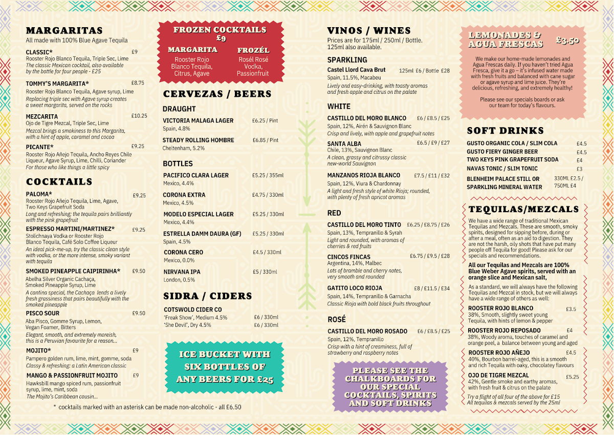 Rooster Rojo Blanco Tequila, Triple Sec, Lime. The classic Mexican cocktail, also available by the bottle for four people - £25